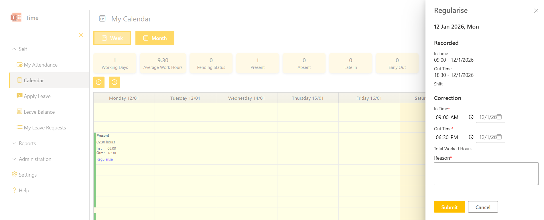 Attendance Regularisation