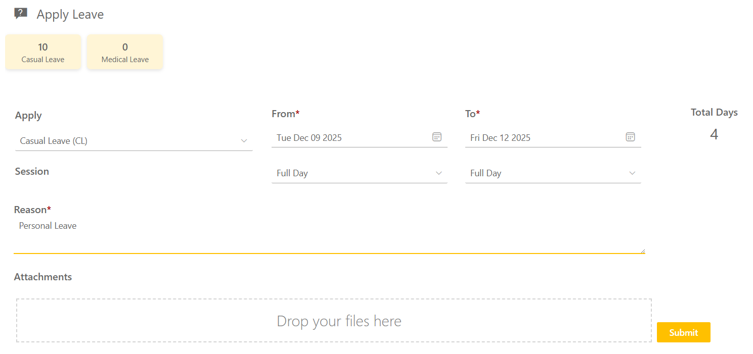 No external systems. No fragmented data. Just one reliable source of truth for attendance and leave management.