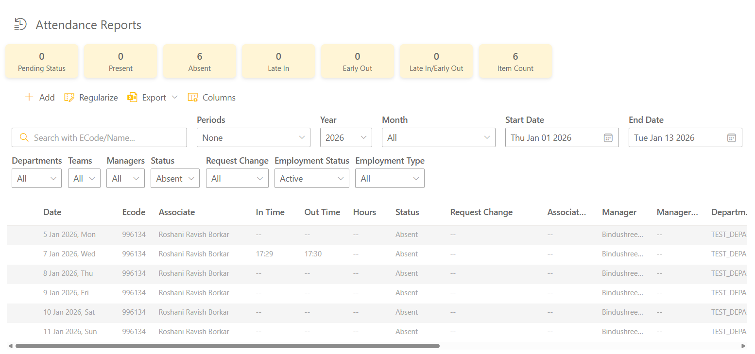 Monitor attendance records and daily status for all reportees