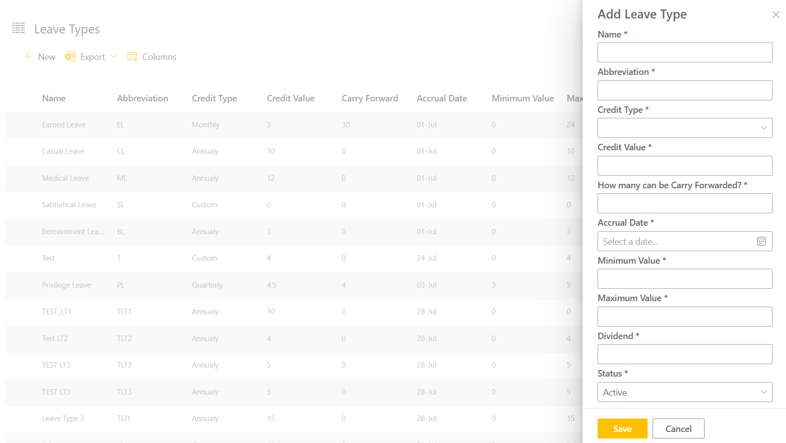 Leave Types Configuration